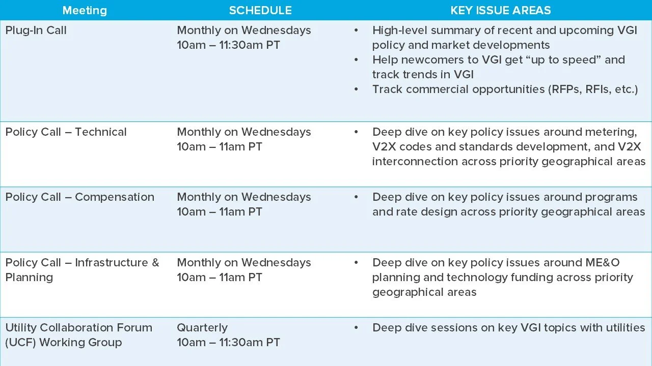 The VGIC Policy Call – Technical is a deep dive into our key policy issues around metering, V2X codes and standards development, and V2X interconnection across priority geographical areas.